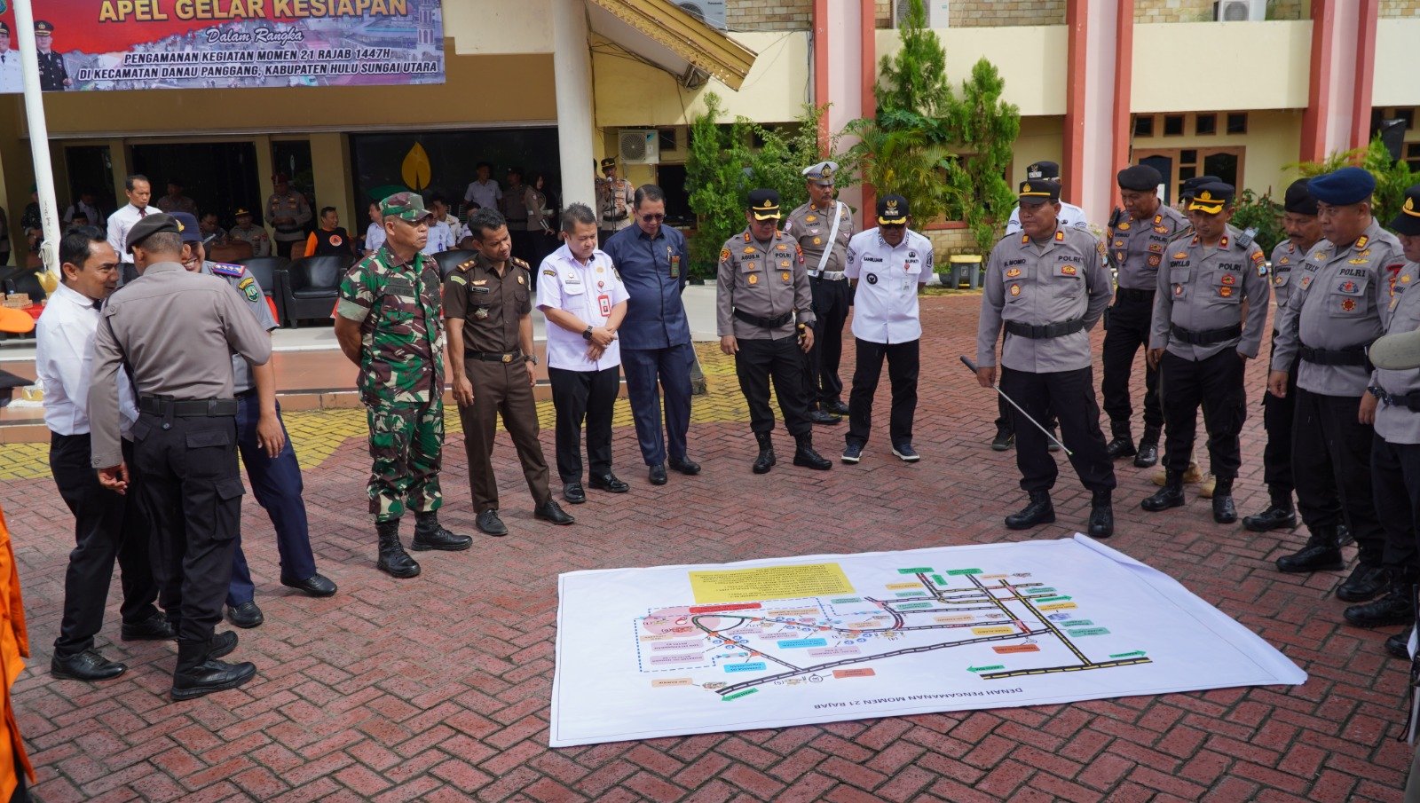 Apel Gelar Pasukan dipimpin oleh Kapolres Hulu Sungai Utara bersama Bupati Hulu Sungai Utara dan diikuti oleh personel gabungan dari TNI, Polri, Satpol PP, Dishub, BPBD, serta instansi terkait lainnya.