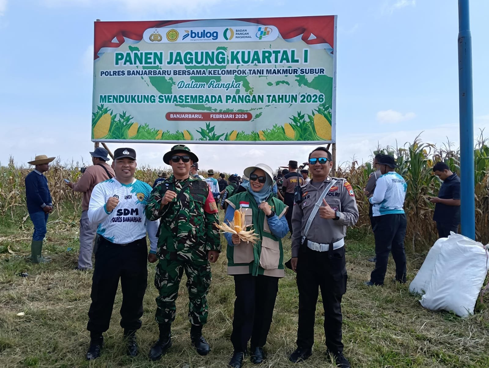 Panen jagung ini melibatkan sinergi lintas sektor antara TNI–Polri, pemerintah daerah, instansi pertanian, serta kelompok tani. Hadir dalam kegiatan tersebut perwakilan Dinas Pertanian Provinsi Kalimantan Selatan, DKP3 Kota Banjarbaru, Kanwil Bulog, jajaran Polresta Banjarbaru, pemerintah kecamatan, penyuluh pertanian, serta para petani jagung Sungai Ulin.