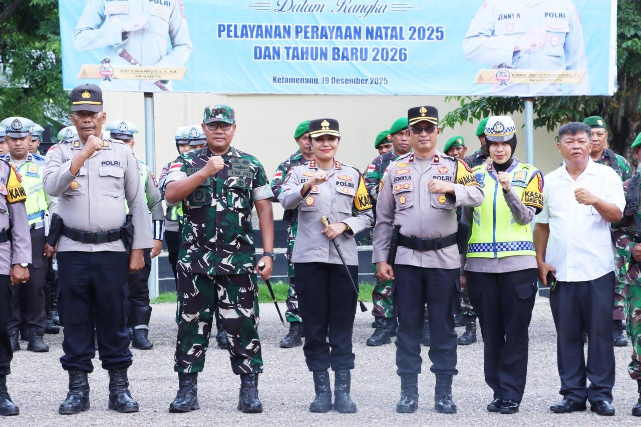 Kefamenanu, 24 Desember 2025 – Dalam upaya menjamin keamanan selama perayaan Natal dan Tahun Baru, Komandan Kodim 1618/TTU Letkol Arm Didit Prasetyo Purwanto dan Kapolres TTU AKBP Eliana Papote memimpin Apel Gelar Pasukan di Lapangan Mapolres TTU, Jalan Prof. Dr. W.Z. Yohanes. Kegiatan ini dihadiri oleh personel dari Kodim dan Polres TTU, sebagai bentuk sinergitas antara TNI dan Polri di Kabupaten Timor Tengah Utara.