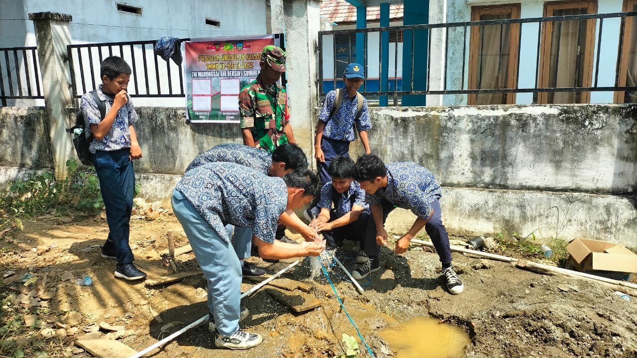 Para siswa terlihat gembira membasuh tangan dan wajah menggunakan air yang jernih dan segar. Anggota Satgas TMMD pun turut mendampingi sambil memberikan edukasi sederhana tentang pentingnya menjaga kebersihan lingkungan dan memanfaatkan air secara bijak.