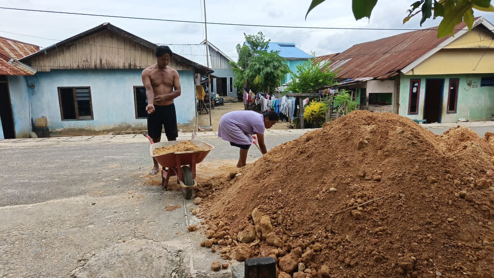Sebuah tindakan spontan dari sepasang suami istri yang berpartisipasi dalam membantu tim Satgas dengan mengangkut timbunan material mencerminkan besarnya kepedulian masyarakat terhadap program pembangunan yang sedang berlangsung. Keterlibatan aktif masyarakat tidak hanya meringankan beban kerja prajurit, tetapi juga memperkuat hubungan kekeluargaan di antara mereka.