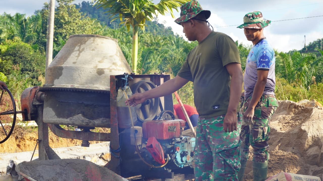 Deru mesin molen memberikan semangat tersendiri bagi anggota Satgas dan masyarakat setempat. Di bawah sinar matahari yang terik, mereka secara bergantian mengisi tabung molen dengan material, menciptakan sinergi yang kuat antara TNI dan warga demi kemajuan desa.