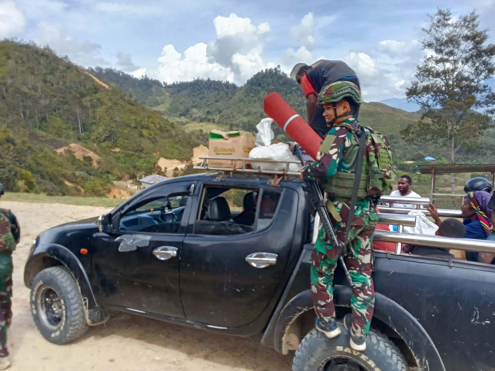 LANNY JAYA – Dalam rangka menjaga keamanan di Distrik Mokoni Prajurit Yonif 614/Rjp Pos Popome melaksanakan sweeping terhadap kendaraan angkutan yang masuk ke Desa Popome, Distrik Mokoni, Kabupaten Lanny Jaya, Papua Pegunungan, Selasa (19/11).