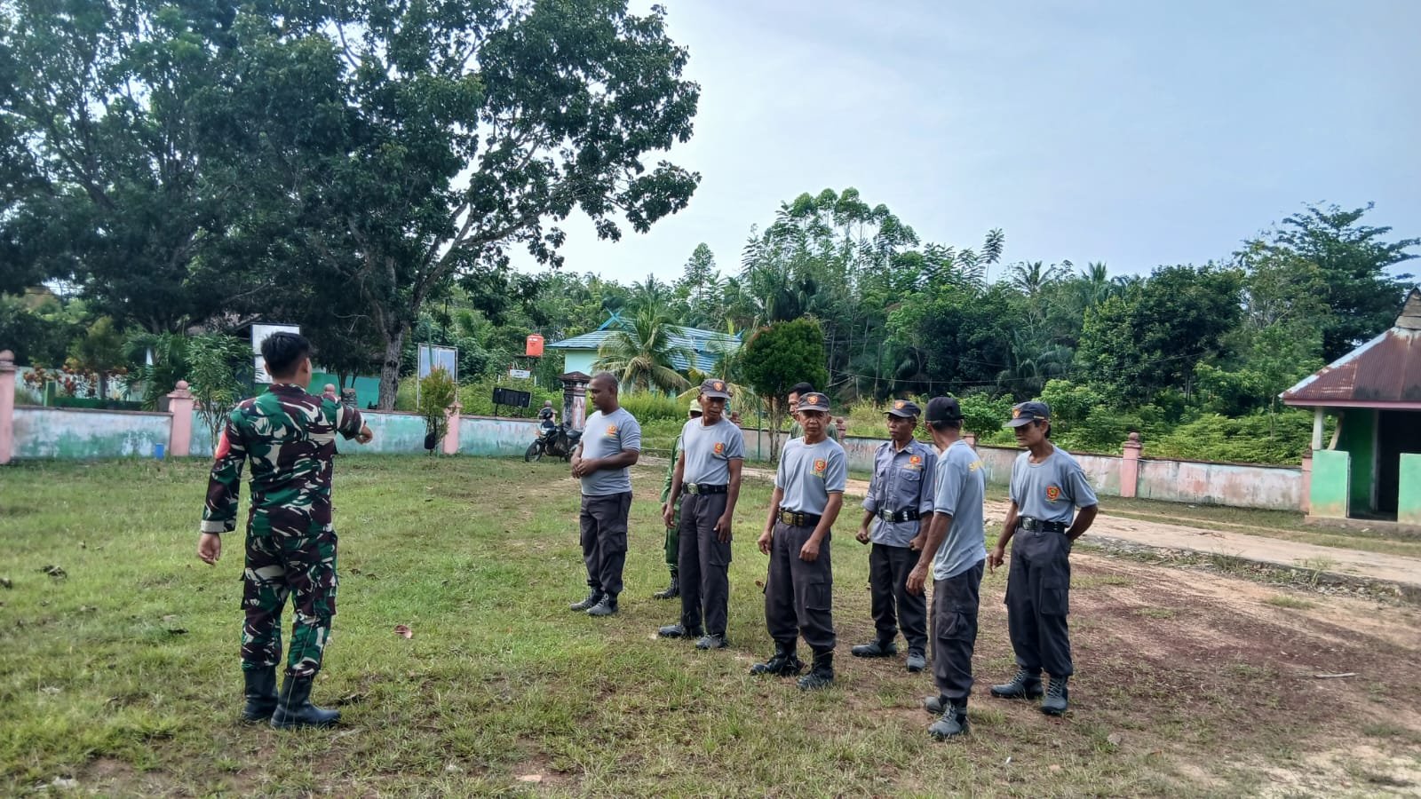 Pangkalan Banteng – Dalam usaha meningkatkan kemampuan dan disiplin para aparat keamanan, Satgas TMMD Ke-128 Kodim 1014/Pbn melaksanakan pelatihan Peraturan Baris Berbaris (PBB) kepada anggota Linmas di Desa Sungai Hijau, Kecamatan Pangkalan Banteng, pada Kamis (30/04/2026).