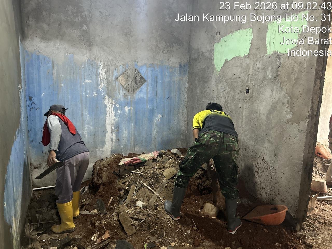 Depok – Kepedulian TNI dalam meningkatkan kesejahteraan masyarakat kembali terlihat melalui program Renovasi Rumah Tidak Layak Huni (RTLH) dalam rangka TMMD Ke-127 Tahun Anggaran 2026 yang dilaksanakan oleh Kodim 0508/Depok. Salah satu penerima manfaat dari program ini adalah Ujang Fadilah, warga Kelurahan Sukamaju, Kecamatan Cilodong, yang saat ini rumahnya sedang dalam proses rehabilitasi.