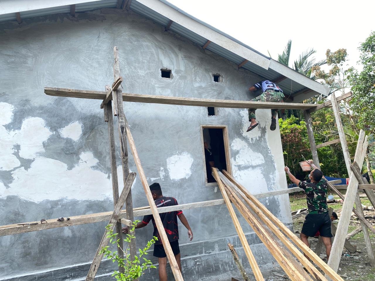 Pada hari itu, anggota Satgas TMMD melanjutkan pekerjaan dengan menyempurnakan struktur rumah dan menata area di sekelilingnya. Setiap langkah dilakukan dengan teliti untuk memastikan bahwa hasil akhir dari pembangunan ini maksimal dan berkualitas.