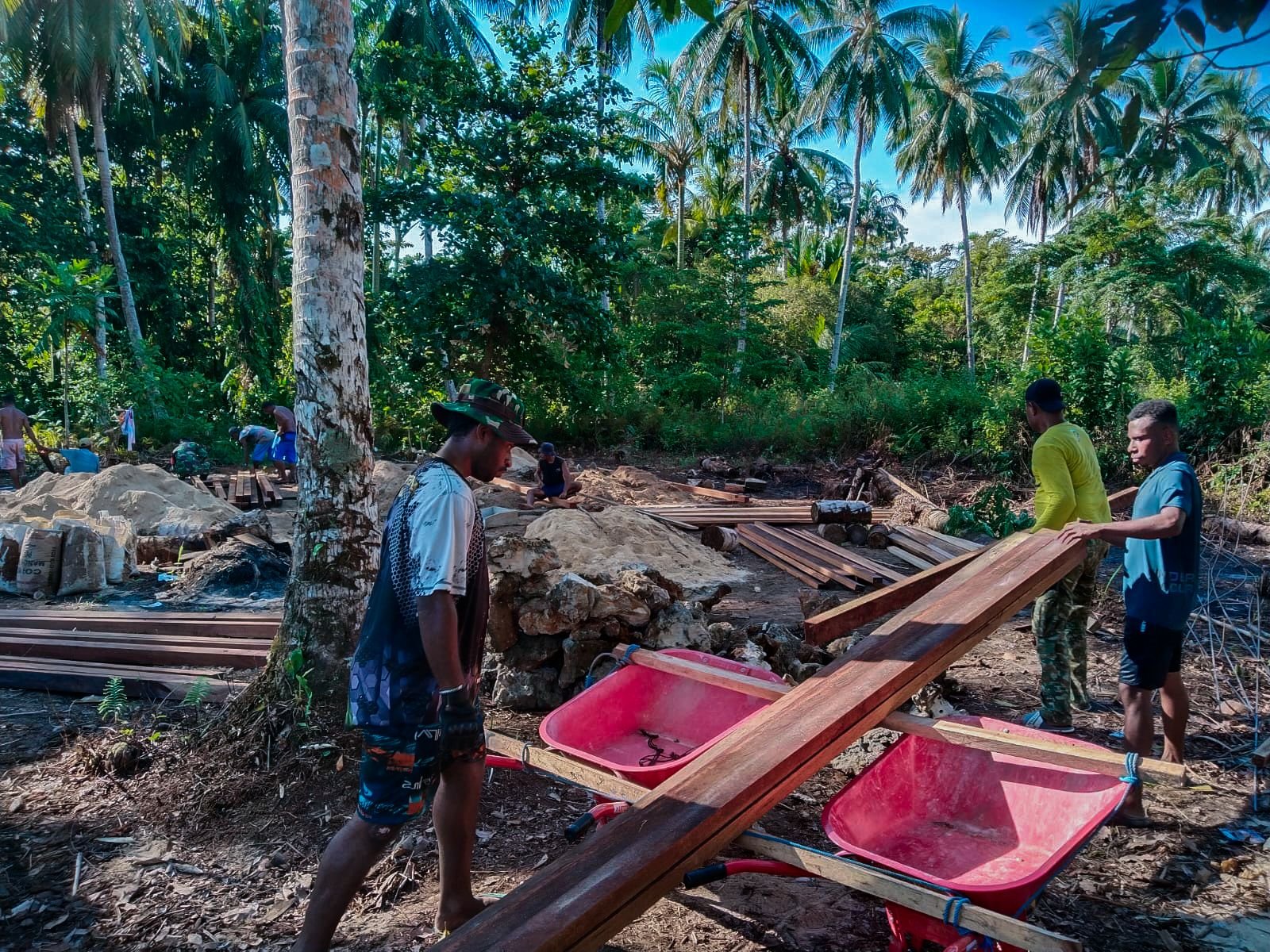 Dalam pembangunan rumah ini, sumber daya yang ada di lingkungan setempat dimanfaatkan secara maksimal. Personel dari Satgas TMMD terlibat langsung dalam setiap tahapan, mulai dari persiapan hingga pembentukan struktur dasar rumah.