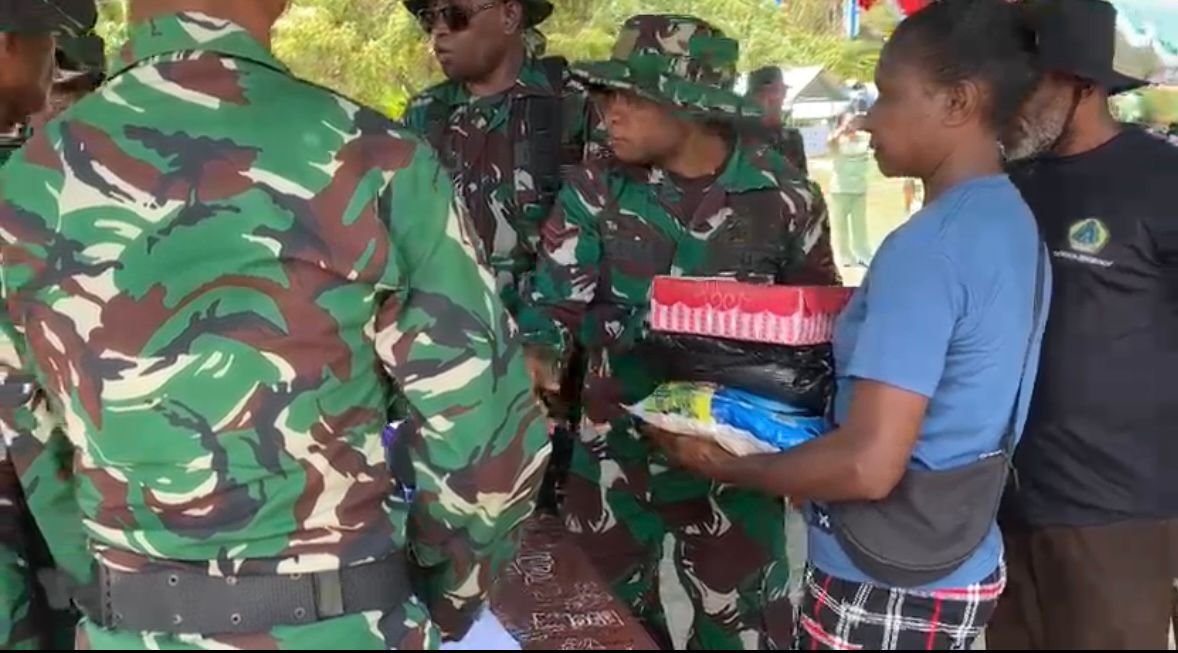 Kaimana – Program TNI Manunggal Membangun Desa (TMMD) ke-127 tidak hanya fokus pada pembangunan infrastruktur, tetapi juga melaksanakan sejumlah kegiatan nonfisik yang memberikan dampak positif bagi masyarakat. Salah satu kegiatan tersebut adalah pembagian sembako yang dilaksanakan di Kampung Marsi, Distrik Kaimana, Kabupaten Kaimana.