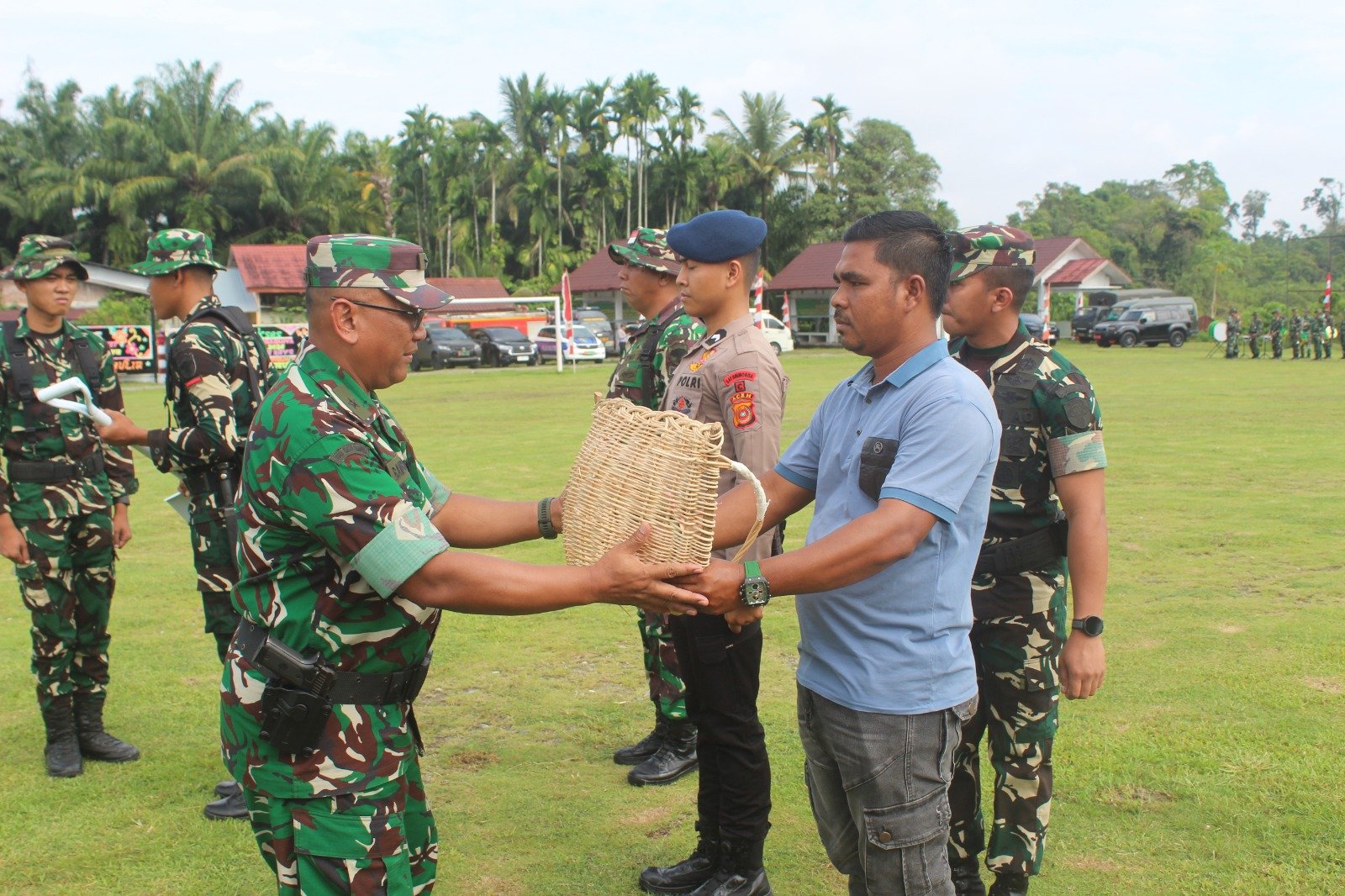 Kegiatan tersebut berlangsung dengan penuh kehangatan dan menjadi salah satu momen penting dalam penutupan program TMMD yang telah dilaksanakan selama satu bulan di wilayah Kabupaten Nagan Raya. Bantuan sembako diserahkan secara simbolis kepada masyarakat yang membutuhkan sebagai bentuk kepedulian sosial sekaligus wujud nyata kemanunggalan TNI dengan rakyat.