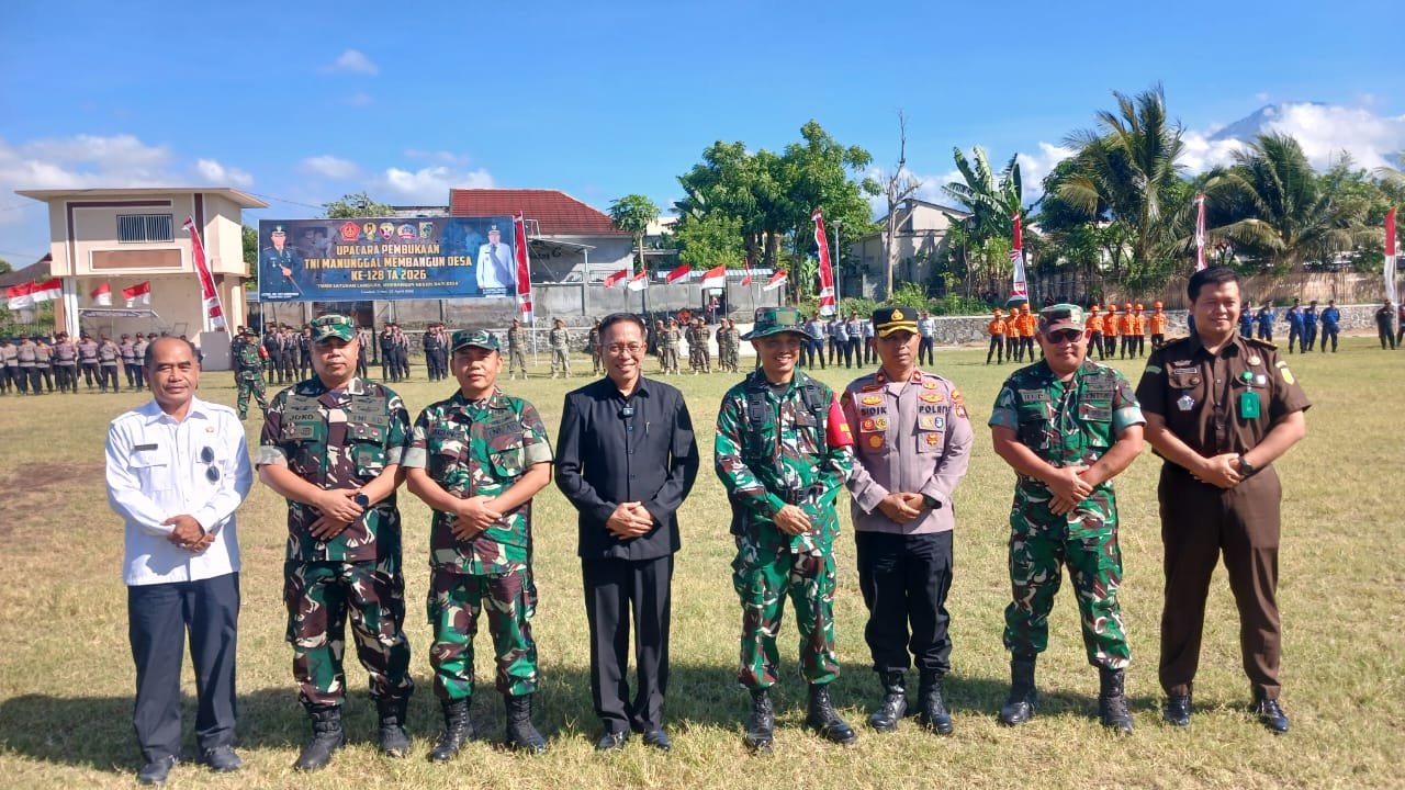 Upacara resmi pembukaan TNI Manunggal Membangun Desa (TMMD) ke-128 yang diadakan oleh Kodim 1615/Lombok Timur dilaksanakan di Lapangan Umum Suralaga, Desa Suralaga, Kecamatan Suralaga, Kabupaten Lombok Timur pada Rabu (22/04/2026).
