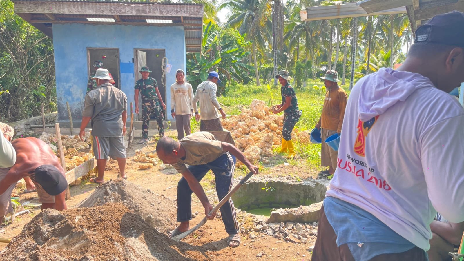 HALMAHERA SELATAN – Satgas TNI Manunggal Membangun Desa (TMMD) ke-128 Kodim 1509/Labuha membangun fasilitas mandi, cuci, kakus (MCK) di Masjid Nurul Iman, Dusun Waimili, Desa Foya Tobaru, Kecamatan Gane Timur, Kabupaten Halmahera Selatan.