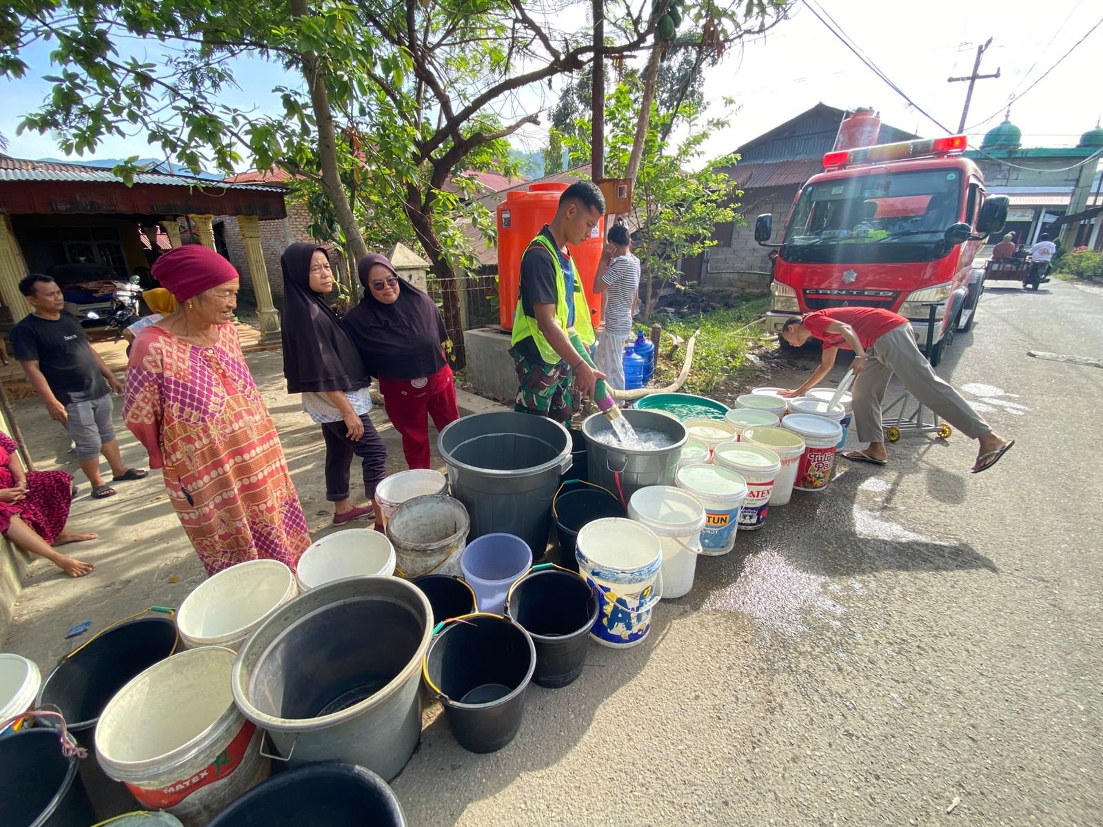 Bantuan air bersih ini disalurkan melalui dua unit kendaraan pemadam kebakaran milik TNI AD, yang dioperasikan oleh personel dari Satuan Tugas (Satgas) Air. Fokus penyaluran diarahkan ke beberapa titik permukiman warga serta fasilitas pendidikan yang mengalami gangguan ketersediaan air bersih.