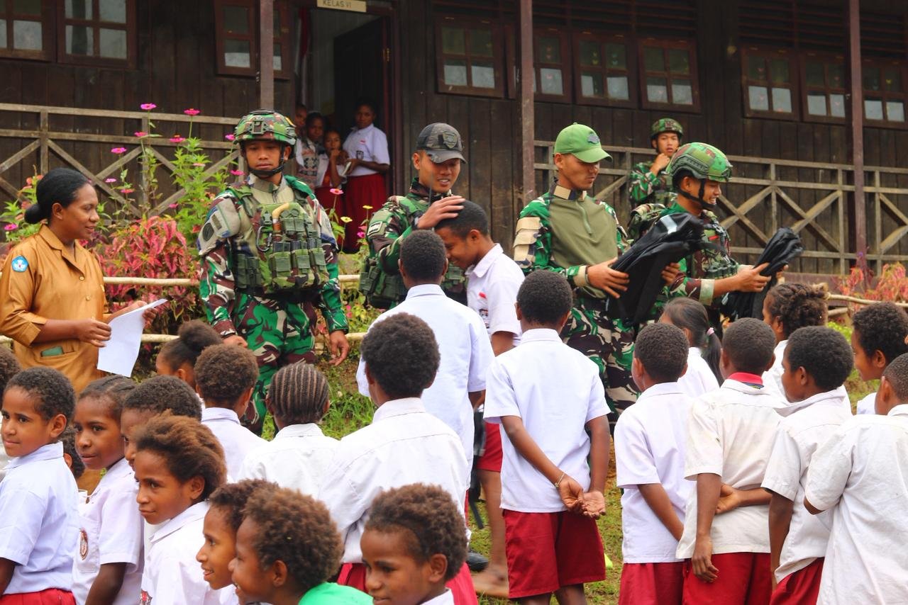 Okpol, Pegunungan Bintang — Dalam upaya meningkatkan pendidikan di wilayah perbatasan, Pos Okpol Satgas Swasembada Yonif 751/Vira Jaya Sakti (VJS) menggelar acara pembagian seragam dan perlengkapan sekolah kepada siswa-siswi SD Okpol. Kegiatan ini dipimpin oleh Danpos Okpol, Letda Inf Lupi Kuncoro, dan dilaksanakan pada Kamis, 26 Februari 2026, sebagai bentuk kepedulian TNI terhadap pendidikan anak-anak di daerah tersebut.