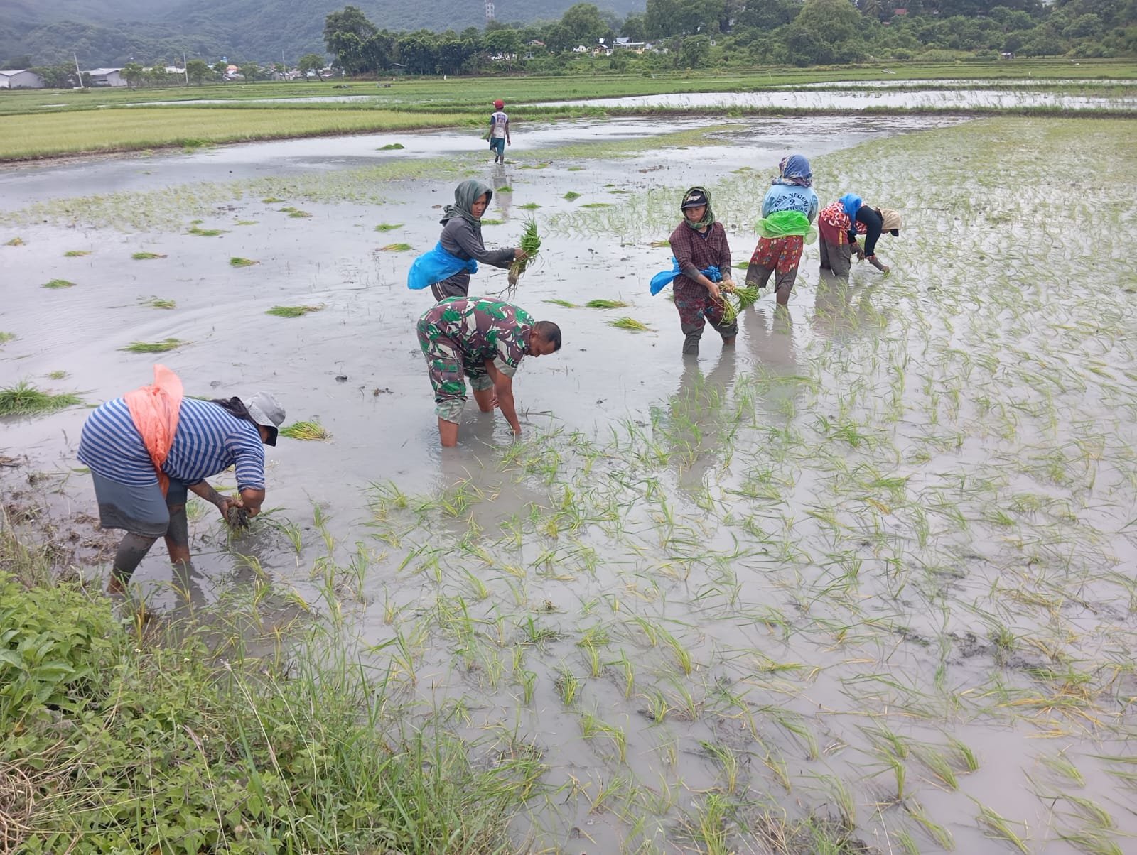 Aksi gotong royong ini melibatkan penanaman bibit padi secara bersama-sama di lahan persawahan milik warga. Salah satu petani setempat menyampaikan rasa syukurnya atas bantuan TNI. ‘Kami merasa terbantu dengan kehadiran anggota Koramil. Tidak hanya meringankan beban, tetapi juga memberikan semangat baru bagi kami,’ ungkap petani tersebut.