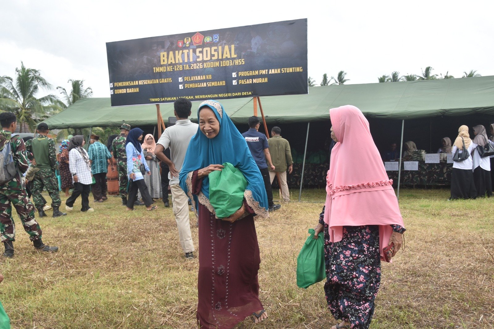 Saat dikonfirmasi, Komandan Kodim 1003/HSS Letkol Inf Ading Priyotantoko selaku Dansatgas TMMD ke 128 menjelaskan bahwa kegiatan Bakti Sosial sengaja digelar di lokasi TMMD pada awal pelaksanaan program. “Ini sebagai wujud kehadiran prajurit TNI Kodim 1003/HSS agar manfaatnya bisa langsung dirasakan oleh masyarakat,” ujarnya.