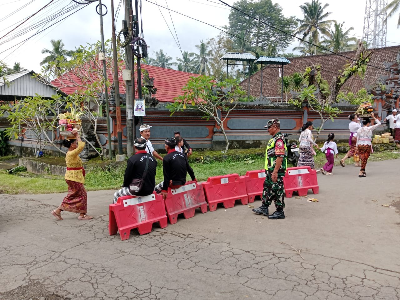 Bangli – Untuk mewujudkan keamanan dan kenyamanan dalam kegiatan keagamaan masyarakat, Babinsa Desa Peninjoan dari Koramil 1626-03/Tembuku, Serka Made Suarnika, melaksanakan pengawasan dan pengamanan Upacara Dewa Yadnya. Acara tersebut berlangsung di Pura Dalem Agung Tampuagan yang terletak di Banjar Adat Peninjoan, Kecamatan Tembuku, Kabupaten Bangli, pada Jumat, 16 Januari 2026.