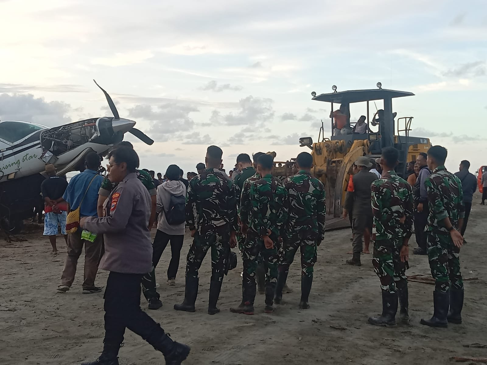 Sesaat setelah menerima informasi mengenai insiden, personel Kodim 1705/Nabire langsung menuju lokasi untuk membantu proses evakuasi dan menyiapkan pengamanan area. Keterlibatan mereka dalam situasi ini menunjukkan komitmen TNI dalam merespons situasi darurat dengan cepat dan efektif. Sejumlah 13 orang yang terdiri dari penumpang dan awak pesawat berhasil dievakuasi dengan selamat tanpa ada laporan korban jiwa.