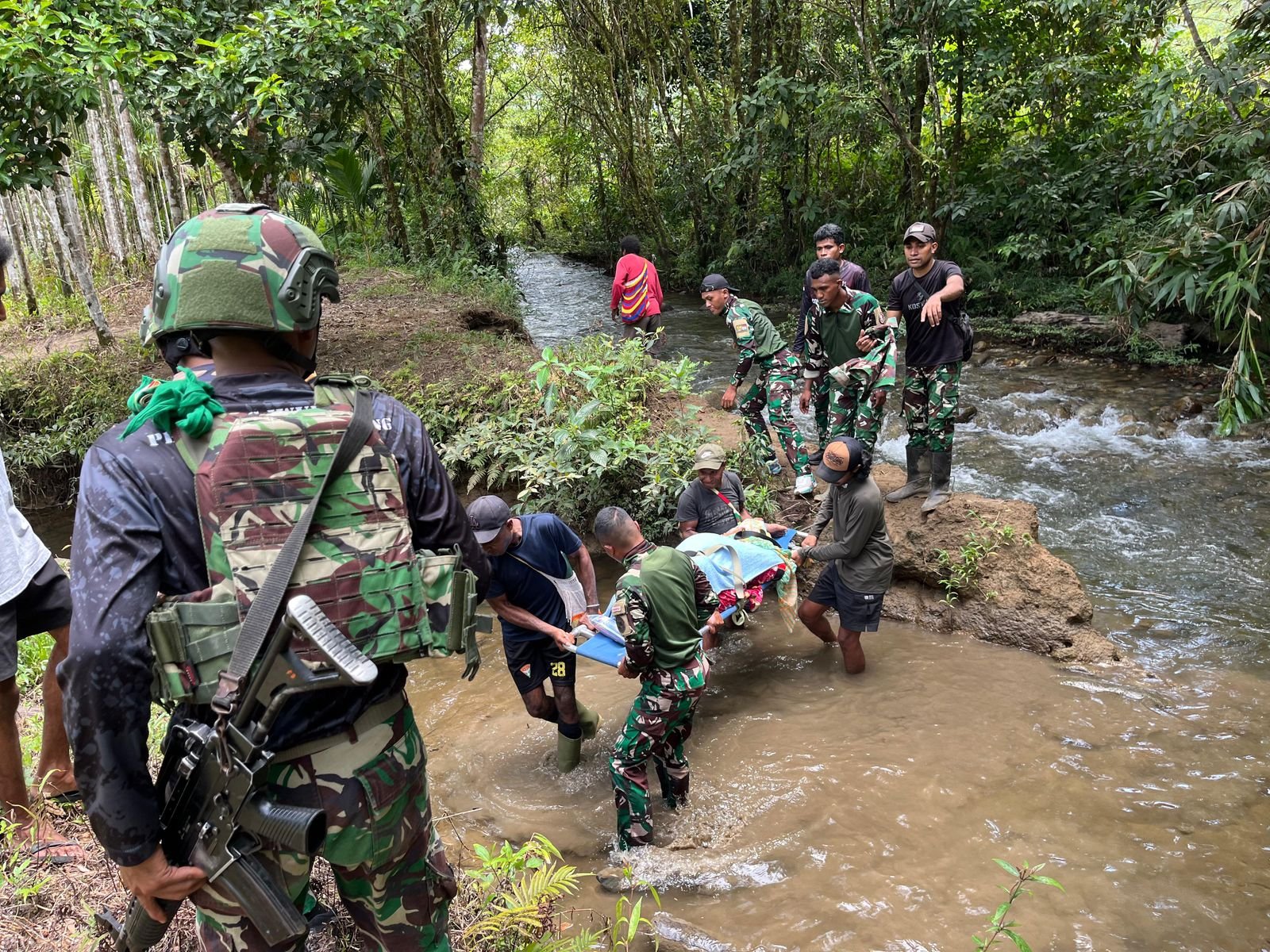 Seluruh proses evakuasi ini dimulai setelah personel Pos Iwur menerima laporan dari warga setempat mengenai kondisi ibu hamil tersebut. Dengan segera, tim medis dan prajurit dari Pos Iwur bergerak cepat menuju lokasi, meski harus melewati medan berat yang dikelilingi hutan lebat, menyeberangi sungai, serta berhadapan dengan jalur berbatu yang licin.