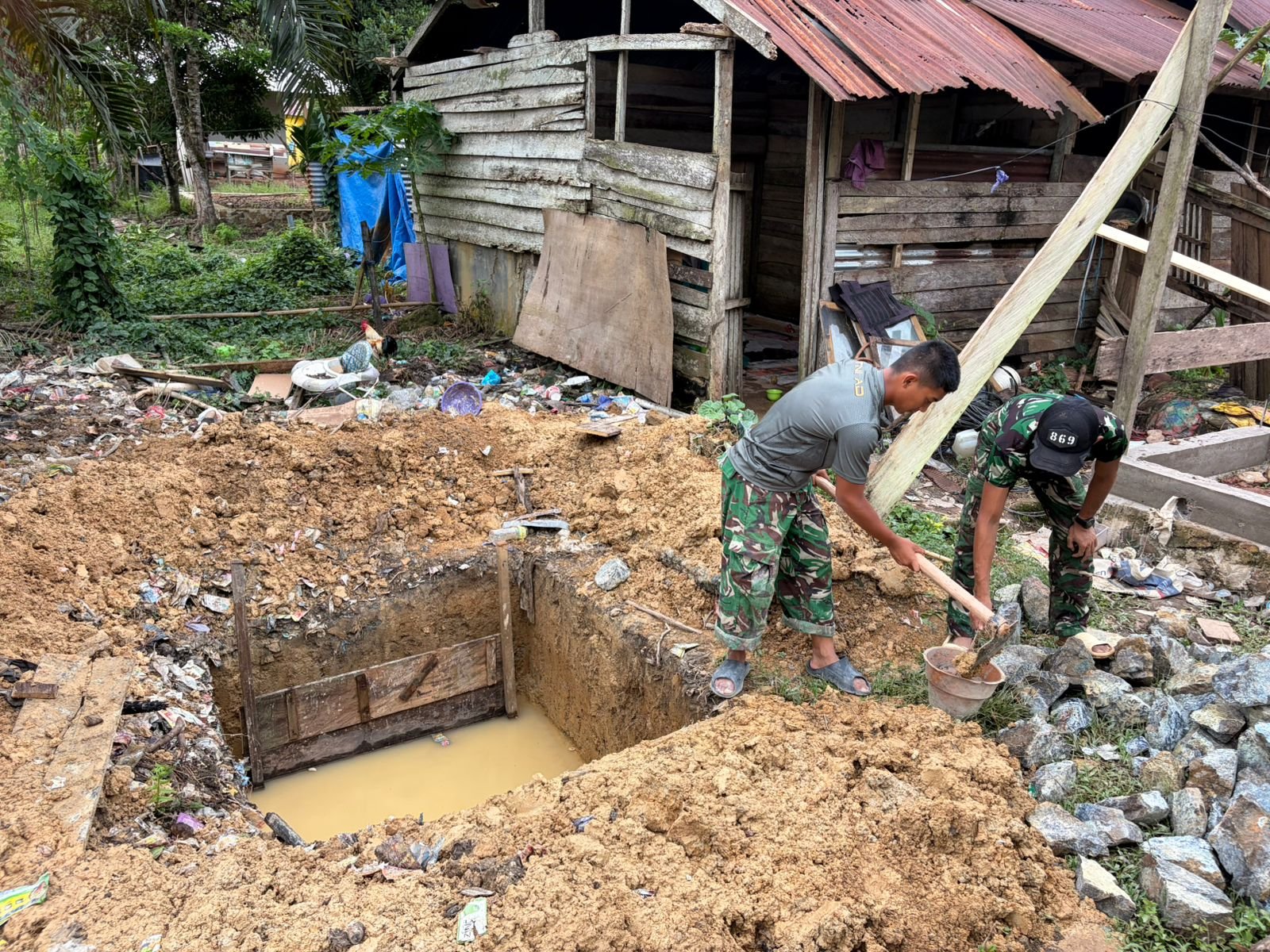 Dengan peralatan sederhana namun tekad yang luar biasa, para personel Satgas bekerja sama untuk mewujudkan pembangunan MCK. Suasana penuh canda tawa selama proses penggalian menggambarkan kedekatan antara TNI dan masyarakat, menjadikan hubungan ini lebih dari sekadar slogan.