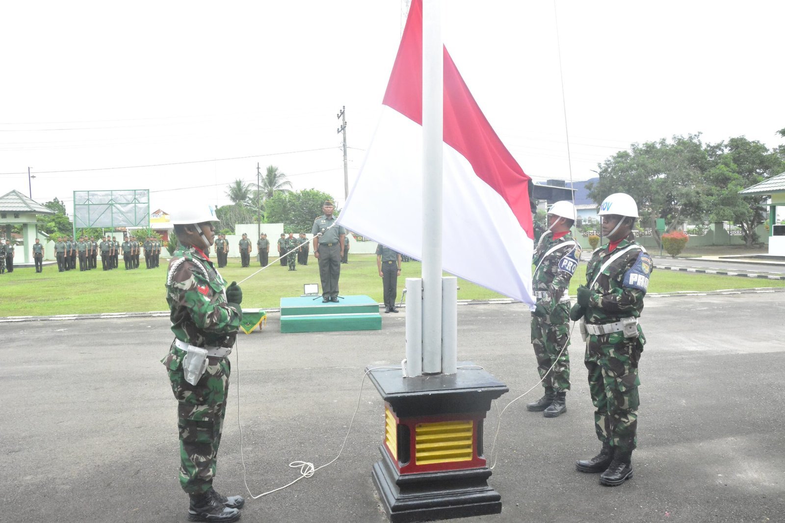 Rangkaian upacara diawali dengan laporan perwira upacara kepada inspektur upacara, dilanjutkan dengan penghormatan kepada inspektur upacara dan pengibaran bendera Merah Putih. Dalam amanatnya, Dandim 0426/TB, Mayor Arm I Ketut Subangga, menekankan pentingnya dedikasi dan netralitas TNI AD dalam mendukung agenda politik nasional, seperti pemilihan kepala daerah serentak, serta komitmen untuk terus menjaga stabilitas sosial dan menciptakan suasana kondusif. Beliau juga mengingatkan agar seluruh satuan melaksanakan evaluasi anggaran secara efektif dan menerapkan latihan adaptif untuk meningkatkan kesiapan prajurit.