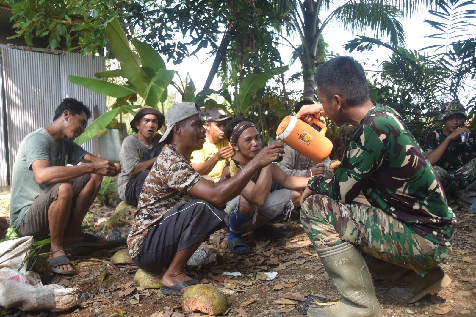 HULU SUNGAI SELATAN – Tak hanya saat bekerja melaksanakan perbaikan dan pengecoran peningkatan mutu jalan, kekompakan serta keakraban masyarakat bersama personel TNI Satuan Tugas (Satgas) TNI Manunggal Membangun Desa (TMMD) Ke-128 Kodim 1003/Hulu Sungai Selatan (HSS) sangat baik, seolah-olah tidak ada jarak sesuai dengan kalimat kemanunggalan TNI dengan rakyat dalam menyelesaikan permasalahan di kalangan masyarakat untuk mewujudkan kesejahteraan di wilayah terpencil.