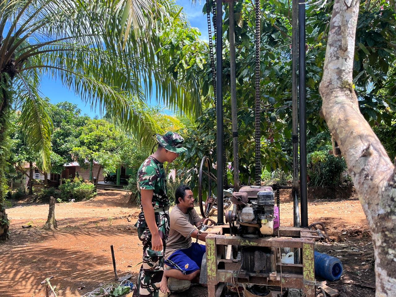 Di lokasi pengeboran, terlihat antusiasme warga yang berpartisipasi aktif dalam proses persiapan bersama anggota Satgas TMMD. Ini menunjukkan semangat kolaborasi yang tinggi di antara masyarakat dan TNI.