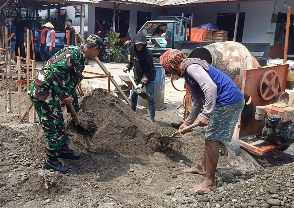 Kegiatan ini merupakan bentuk nyata kepedulian TNI terhadap kesulitan masyarakat di wilayah binaan. Dengan mengenakan seragam kebanggaannya, Kopka Ihwanudin bersama puluhan warga bahu-membahu menyusun batu kali dan mengaduk semen. Kehadiran Babinsa di tengah-tengah masyarakat ini tidak hanya memberikan bantuan tenaga, tetapi juga menjadi motivasi tersendiri bagi warga untuk lebih bersemangat menyelesaikan pekerjaan tersebut.