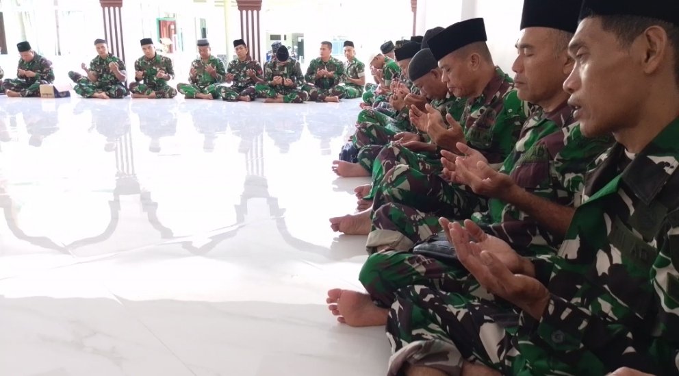 ACEH BARAT – Sebagai wujud solidaritas dan jiwa korsa, prajurit Kodim 0105/Abar menggelar kegiatan pembacaan Surat Yasin dan doa bersama untuk tiga prajurit TNI Satgas UNIFIL yang gugur akibat ledakan proyektil artileri IDF di Lebanon Selatan. Kegiatan berlangsung khidmat di Musholla Teuku Umar Home Base Makodim setempat, Jalan Imam Bonjol, Desa Drien Rampak, Kecamatan Johan Pahlawan, Rabu (1/4/2026).