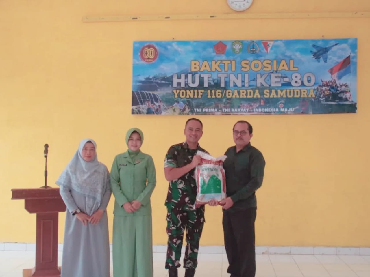 Aceh Barat – Dalam rangka menyambut HUT TNI ke-80, Yonif 116/Garda Samudra melaksanakan bakti sosial di Panti Asuhan SOS Desa Taruna, Kecamatan Johan Pahlawan, Aceh Barat, Kamis (2/10/2025). Kegiatan ini diikuti personel Yonif 116/GS bersama anak-anak panti asuhan.